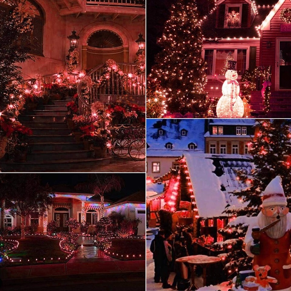 End-to-End Connectable: Each Christmas light has an end-to-end connector, and you can connect up to 100 sets of these strings end-to-end, freely connecting according to your needs. Hang these fairy lights from your roof, porch, or fence, or wrap them around trees to create a romantic holiday atmosphere and enjoy a happy holiday season with your family.