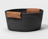 With its balance of function and style, the Small Coiled Rope Basket from Brightroom? will make a great storage solution in your home. This decorative basket is made up of coils of charcoal-hued rope accented with tan leather handles for a simple yet chic look you'll love to have on display. At 5 inches by 10 inches by 11 inches, the basket is a perfect size for holding smaller items like mail, your keys and wallet on an entryway table, hair accessories or cosmetics on your vanity, or pill bottles and bandages in your medicine cabinet. Wherever you choose to place it, you'll appreciate how easily the neutral charcoal and tan color combo coordinates with your current color palette. Brightroom? started with a simple truth: When you?ve got it together, you feel better. Our versatile designs reveal the possibility in every closet, cupboard and drawer, and work together to create brilliant ways to organize your every day. Top Width: 10" Bottom Width: 8.5" Interior Height: 4.875" Interior Width: Top 9.5", Bo