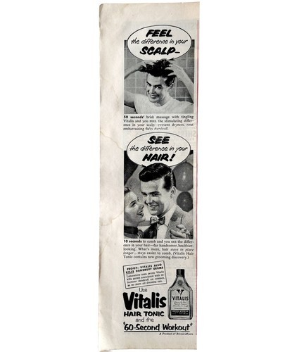 - Bristol Myers Vitalis Hair Tonic 1952 Advertisement Care Dandruff Removal DWEE8