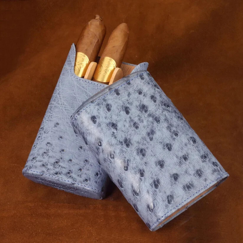 - Brizard American Blue Jeans Ostrich 3 Cigar Case Made in USA NIB