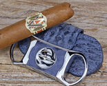 The Brizard American Blue Jeans Ostrich V Cutter Case is a high-quality and stylish accessory for cigar enthusiasts. Made in the USA by Brizard and Co, this cutter and case combination boasts a sleek design and durable construction. The ostrich leather adds a touch of sophistication, making it a standout piece in any collection of tobacciana items. Perfect for both practical use and display, this cutter and case set is a must-have for any cigar aficionado.