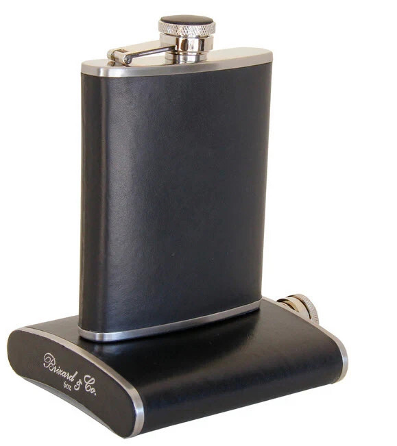 - Brizard Flask 8 oz. Sunrise Black Leather Made in USA NIB