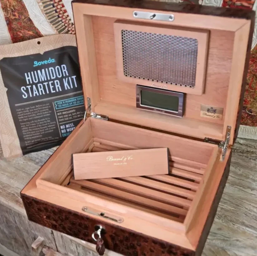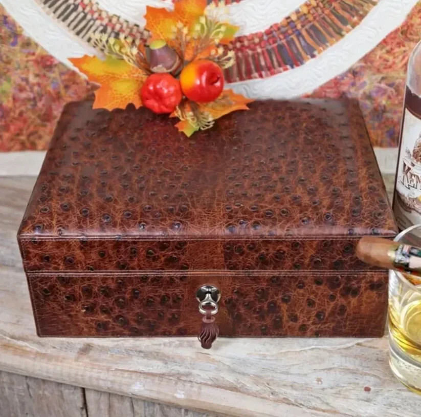 - Brizard and Co Antique Saddle Ostrich " Airflow" Humidor 30 / 40 ct Made in USA