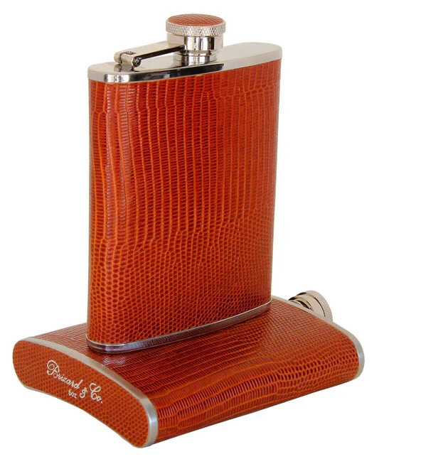 - Brizard and Co Flask 8 oz. Lizard Pattern Leather Made in USA NIB