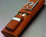 - Brizard and Co Rosewood 3 Cigar Case , Cutter and Lighter Made in USA NIB