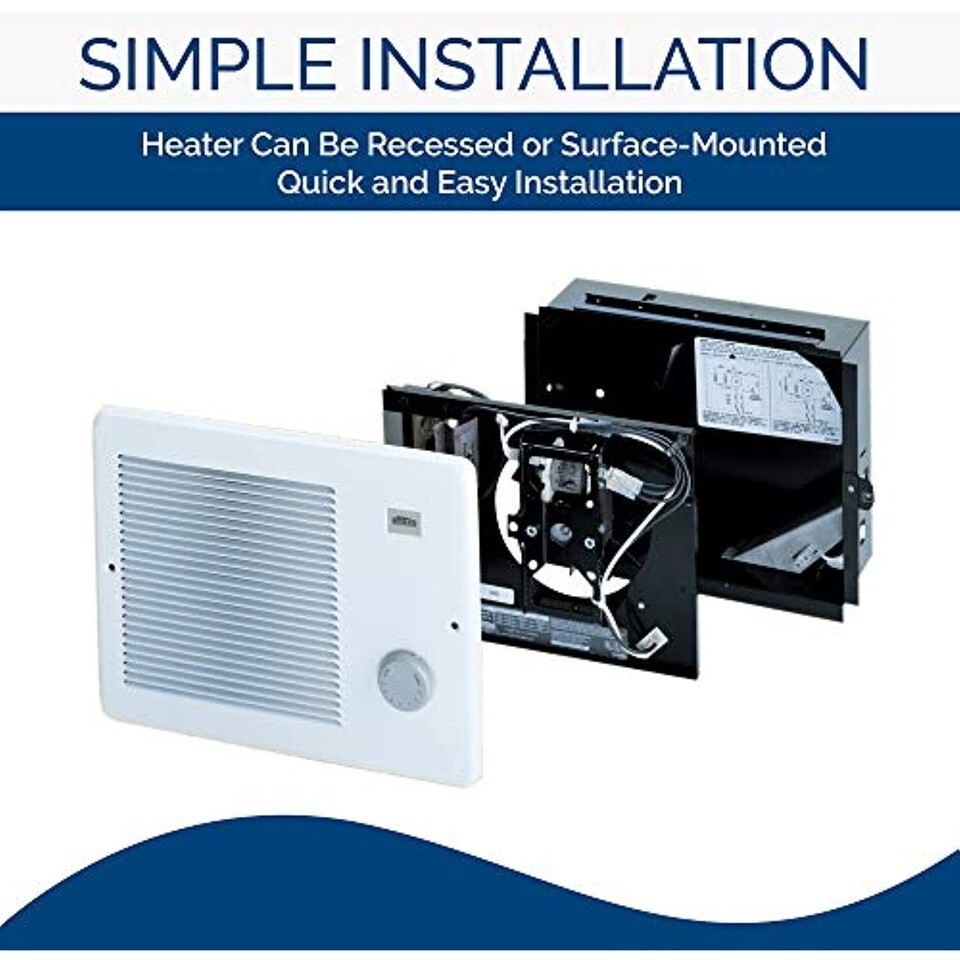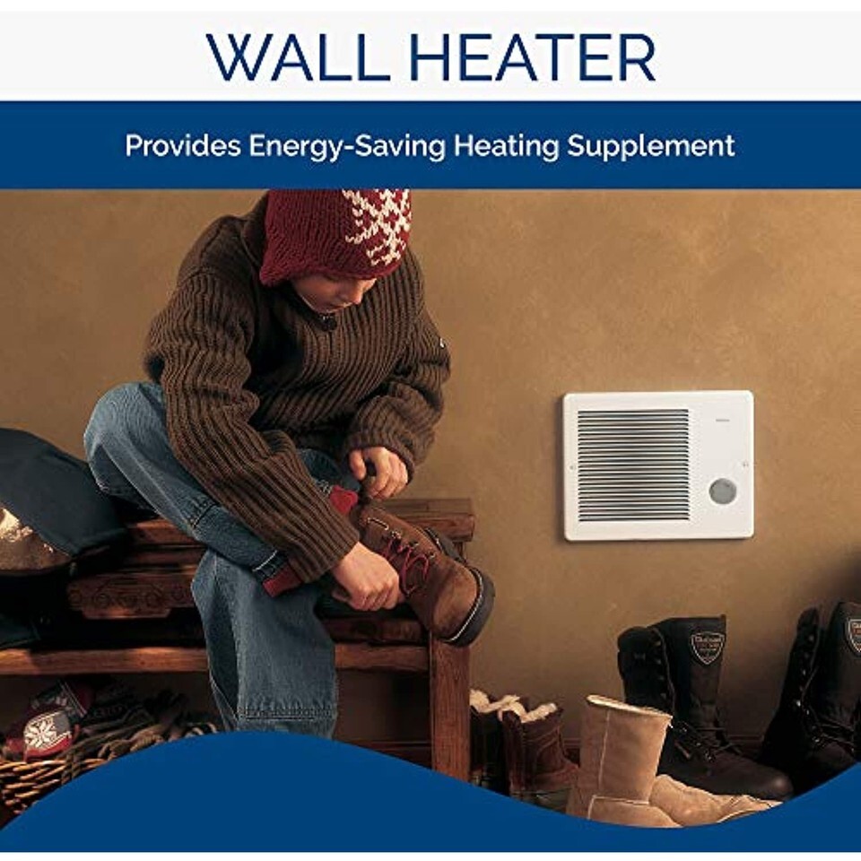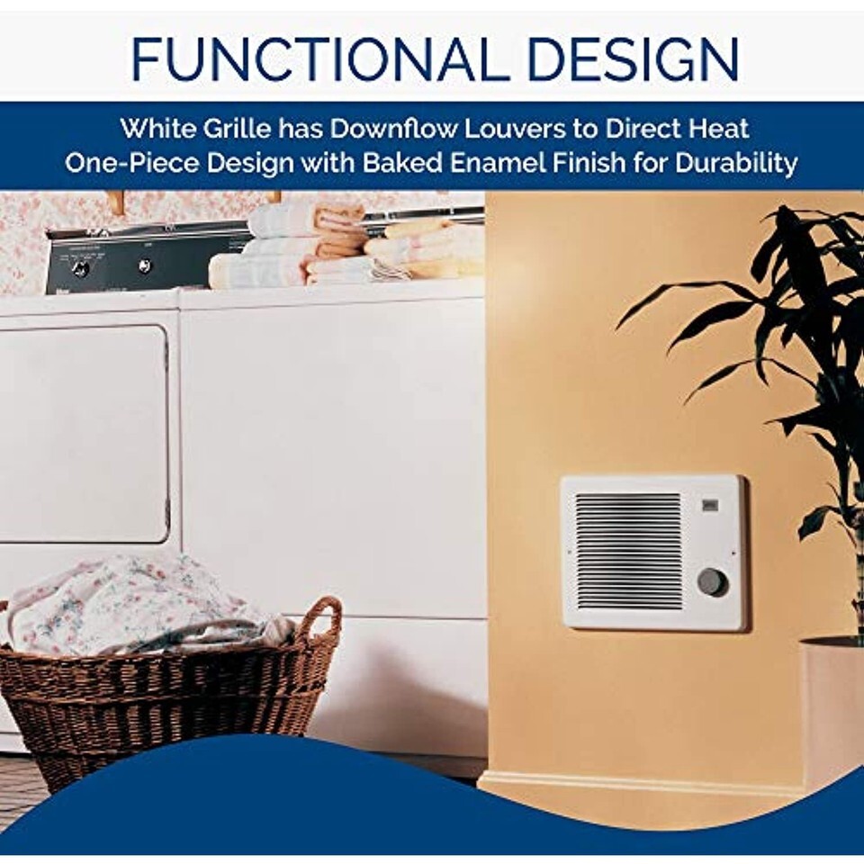 - Broan Wall Heater, White Grille Heater with Built-In Adjustable Thermostat,