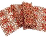 Beautiful Broderie Cutwork Collection red and gold cutout table runner. A