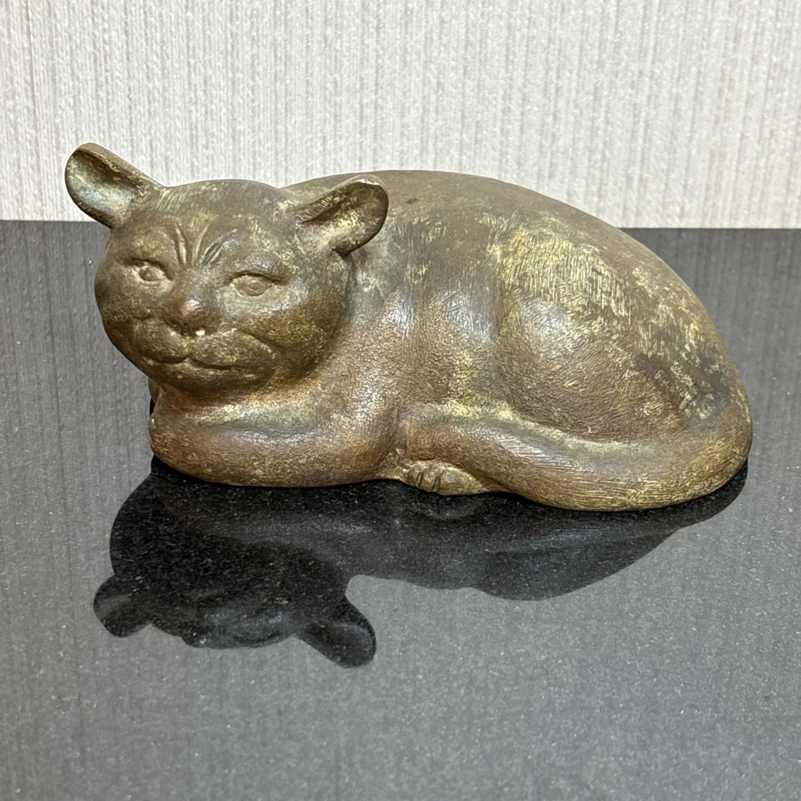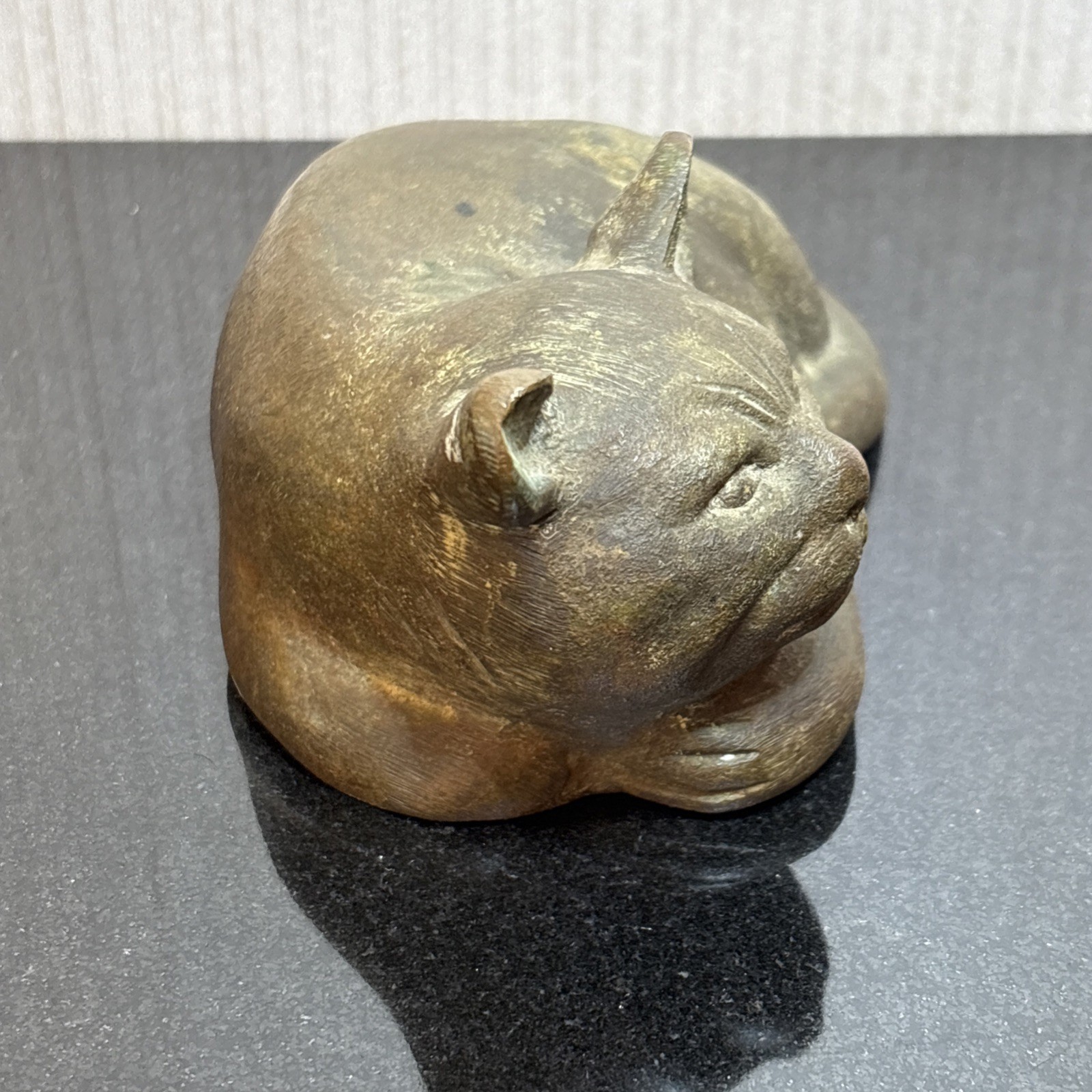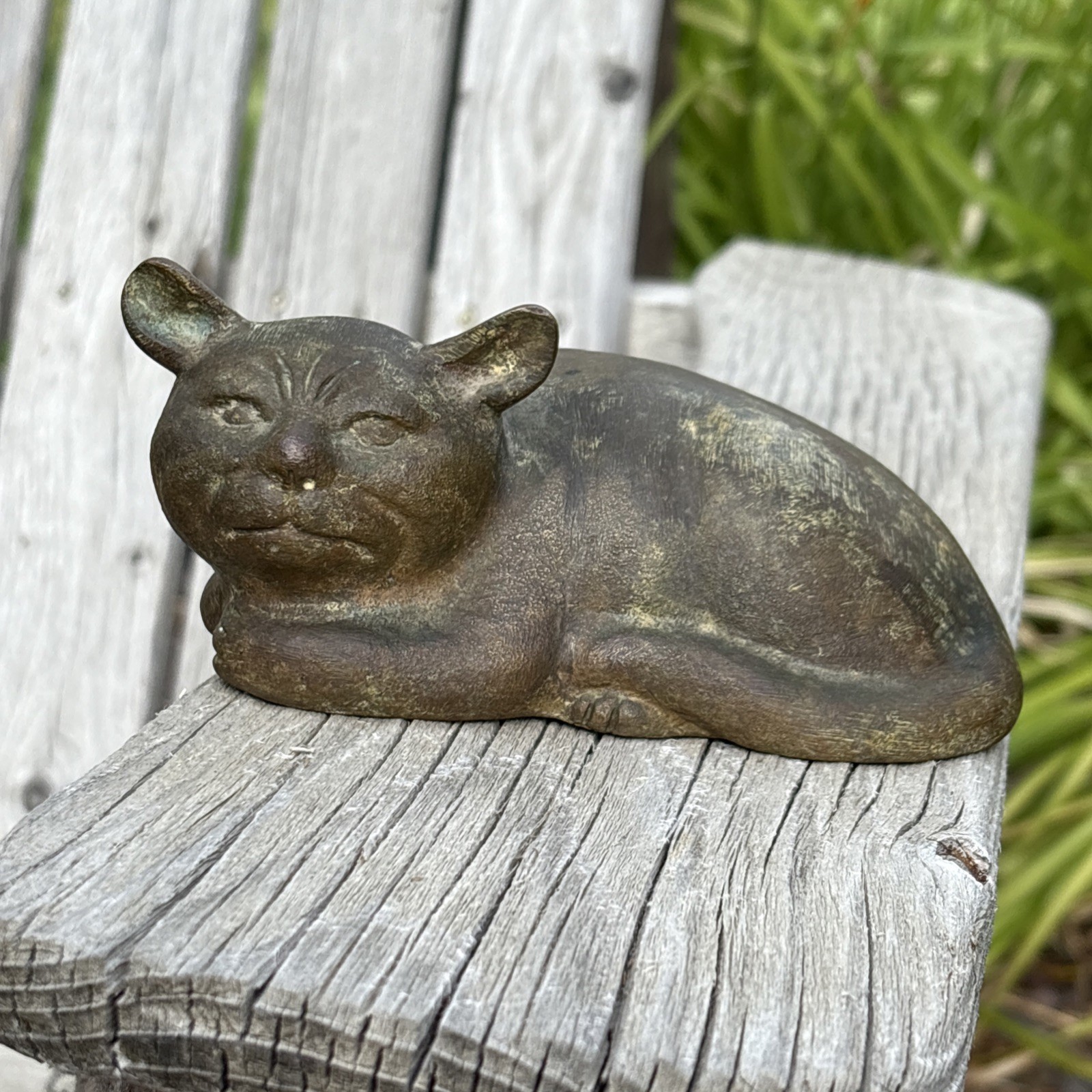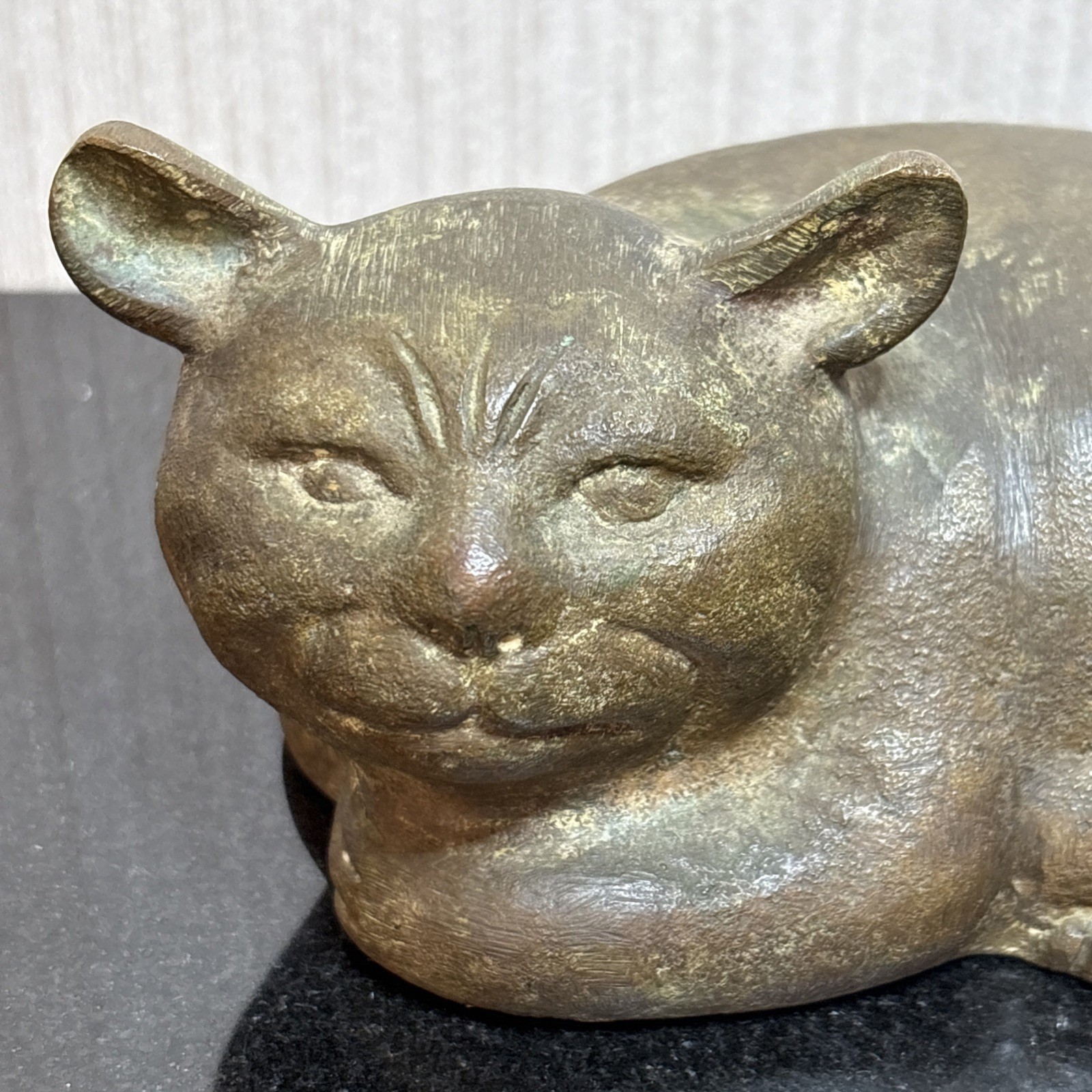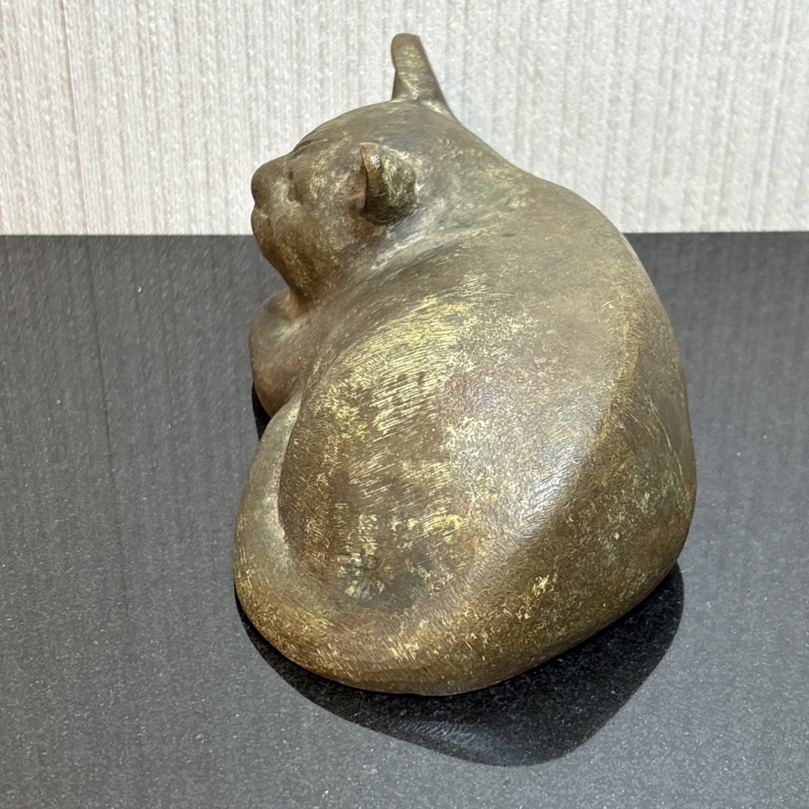 - Bronze Chinese Cat Figure Han Style Recumbent Kitten Statue Patinaed Sculpture