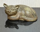 Bronze Chinese Cat Figure Han Style Recumbent Kitten Statue Sculpture