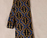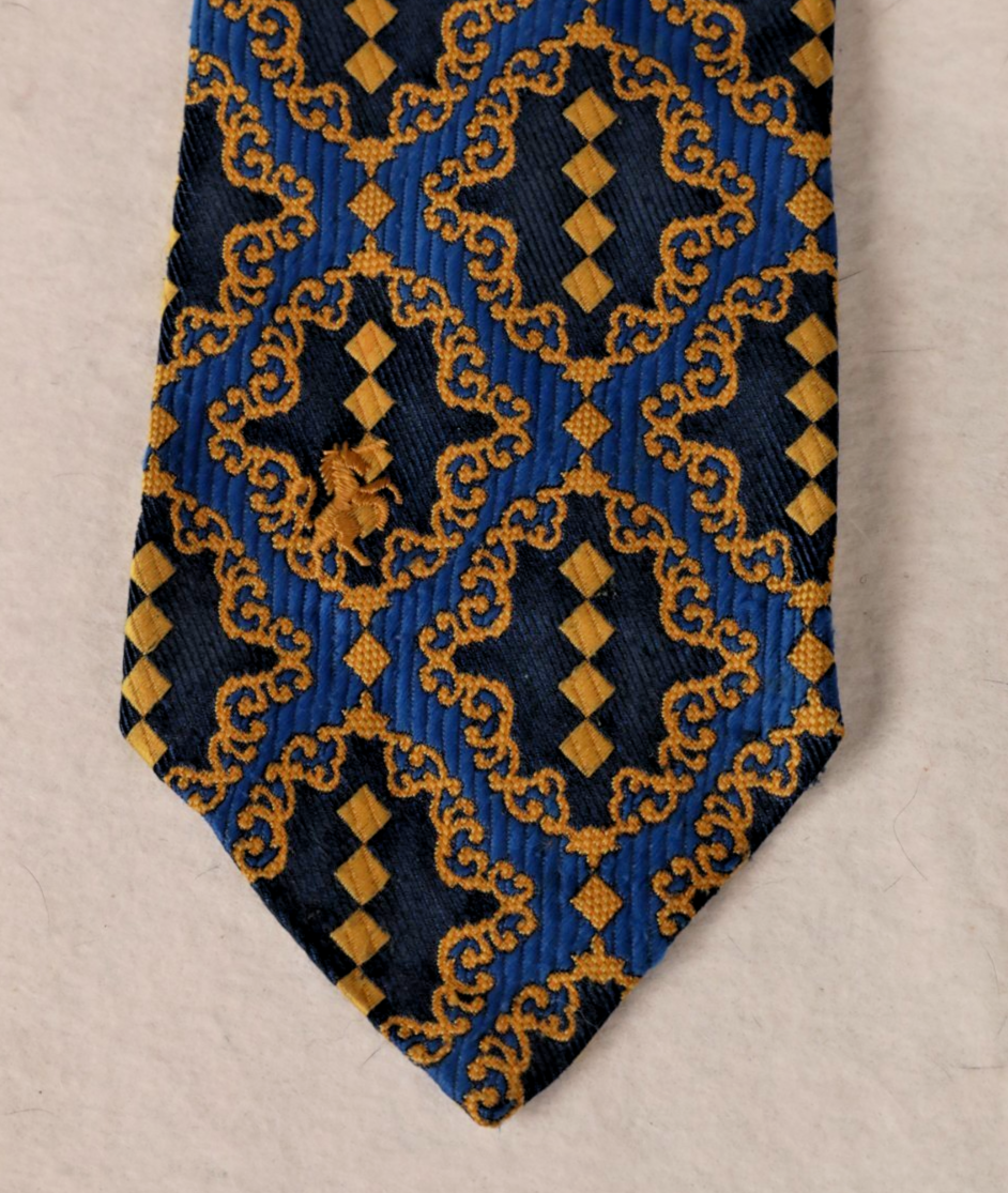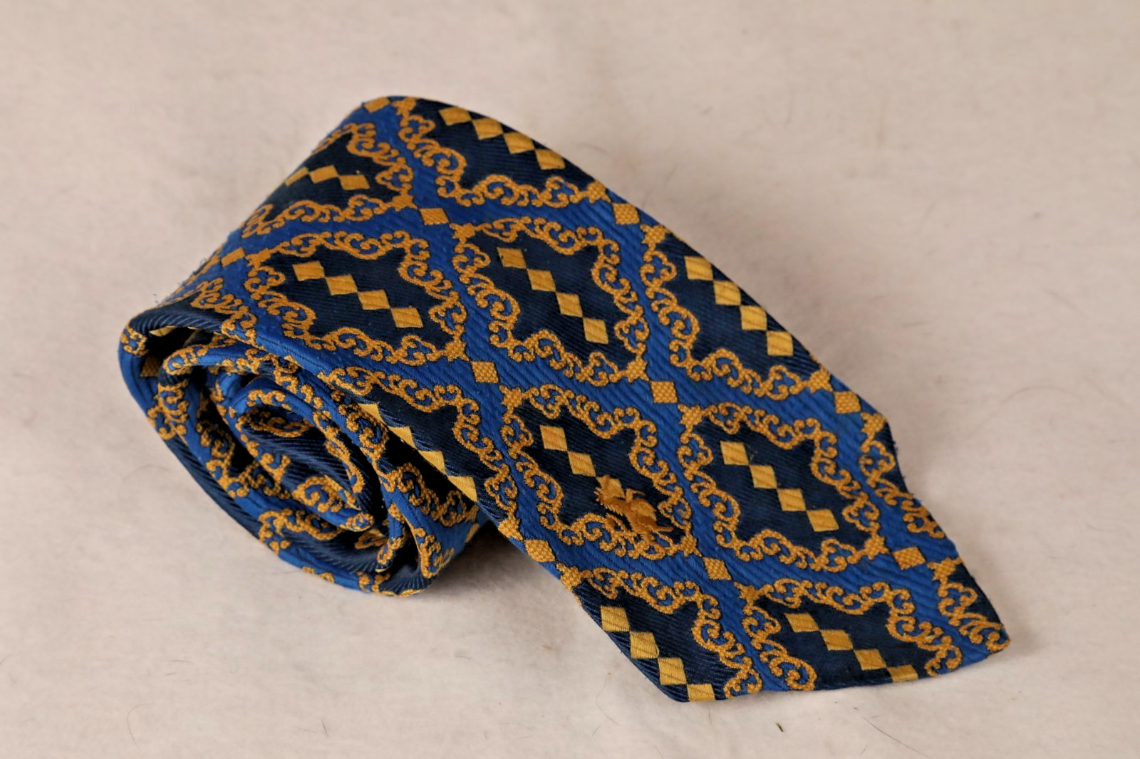 - Bronzini Unicorn Logo Men's Geometric Vintage Tie Blue Gold Polyester 57 X 3 3/4