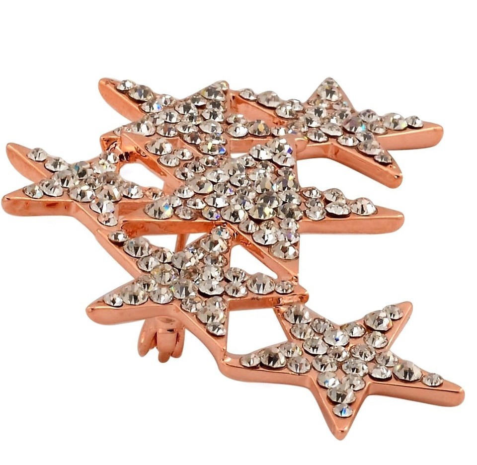 - Brooch Rose Gold Tone Clear 2 inches wide Star shaped Austrian Crystal