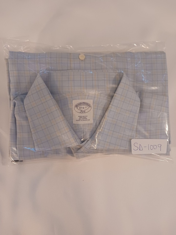 - Brooks Brothers 346 Blue Long Sleeve Spread Collar Blue Men Dress Shirt 17-6/7