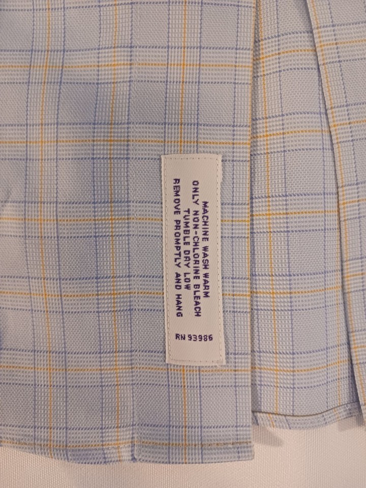 Elevate your wardrobe with this Brooks Brothers 346 dress shirt in a classic blue color. Made with 100% cotton material, this regular fit shirt features a spread collar and button closure for a polished look. The long sleeves add a touch of sophistication, making it suitable for any formal occasion. Designed for men, this dress shirt is sized at 17-6/7 and has a collar style that complements any neckline. Perfect for those who appreciate quality clothing, this Brooks Brothers 346 dress shirt is a must-have addition to your wardrobe.