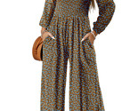 - Brown Floral Print Western Smocked Bodice Square Neck Wide Leg Jumpsuit