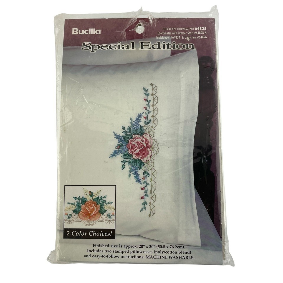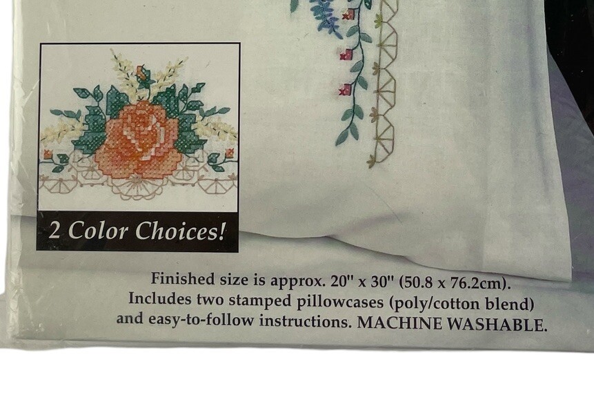 - Bucilla Elegant Rose Pillowcases Stamped Cross Stitch Pattern Vintage 1999 64825
