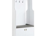 This hall tree brings structure and convenience to your entryway or mudroom. Designed to keep daily essentials within easy reach, it offers a designated spot for coats, hats, bags, and more. Its tall profile and thoughtful layout help reduce clutter while making the most of vertical space. Perfect for busy households or compact foyers, this piece supports smooth daily routines and keeps everything in one place. A practical yet stylish solution for staying organized as you come and go.