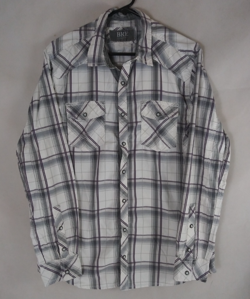 This is for a Buckle BKE Standard Fit Gray Plaid With Smokey Pearl Snaps Men's Shirt Large.