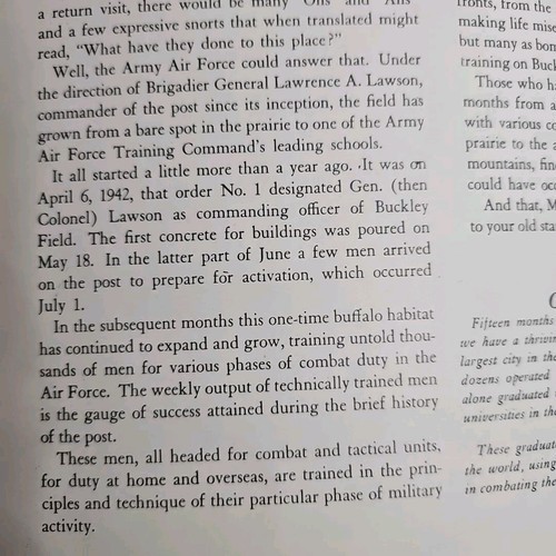 - Buckley Field Army Air Forces Technical Training Command Pictorial History 1943