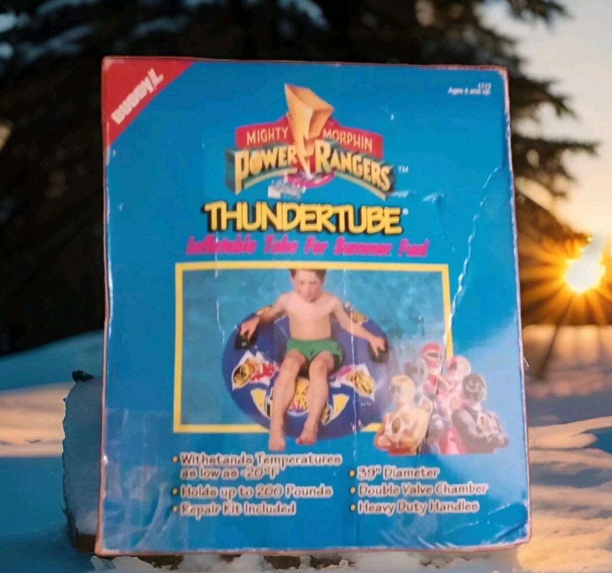 Get ready for some winter fun with this Vintage 1994 Buddy L Mighty Morphin Power Rangers Thundertube Winter Fun Inflatable Tube!