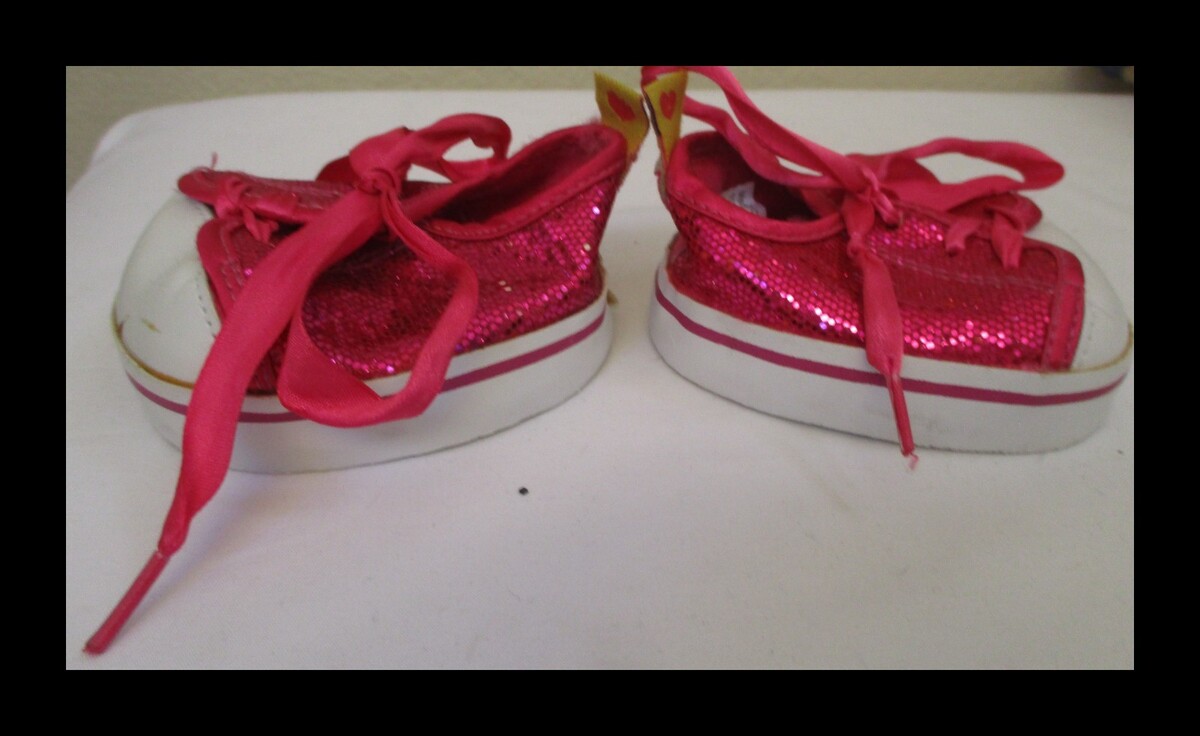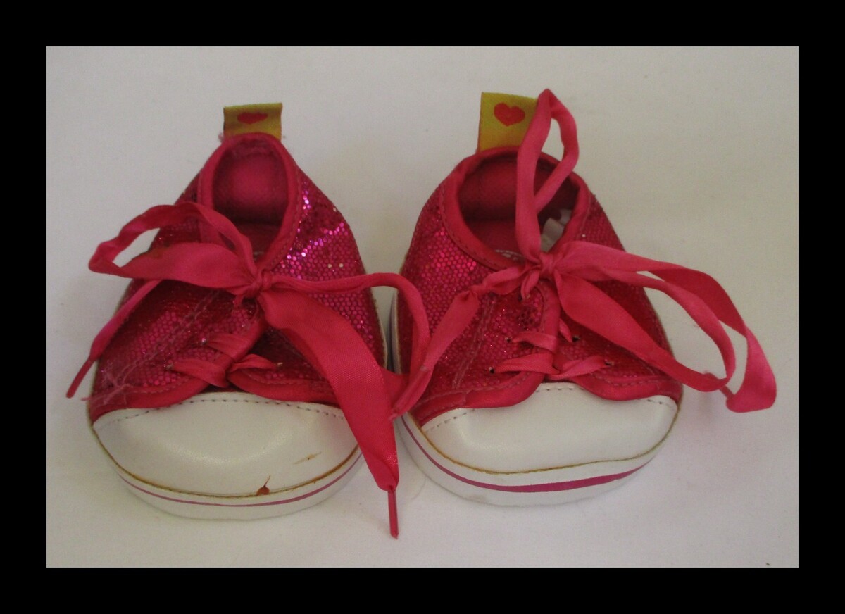 Build A Bear Workshop Fuchsia Pink Glitter Tennis Shoes (NOT HIGH TOP VERSION). Fair condition with wear and some stains. Same or next day ship.
