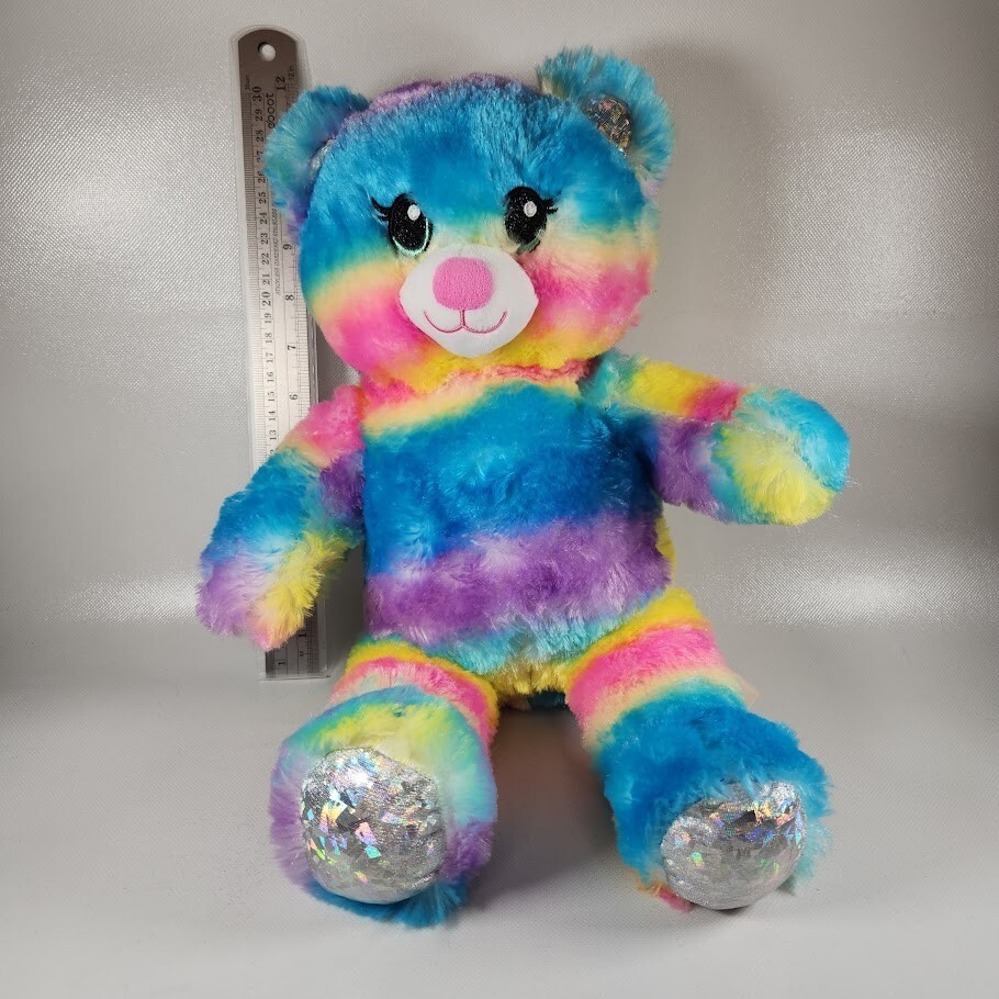 - Build A Bear Workshop, Rainbow Stripe Sparkle Bear 16” Plush Tye Dye