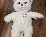 Build a Bear White Cat Kitten Kitty With Pink Heart Stuffed Plush Toy 18”