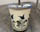 - Bujno Blue Stoneware Studio Pottery Crock Floral Vase 2001 SIGNED