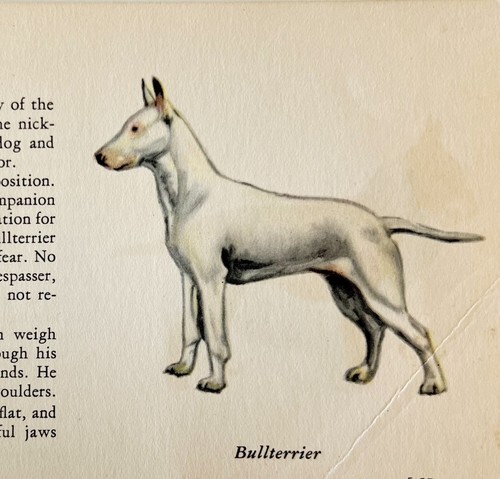- Bull Terrier White 1939 Dog Breed Art Ole Larsen Color Plate Print PCBG17