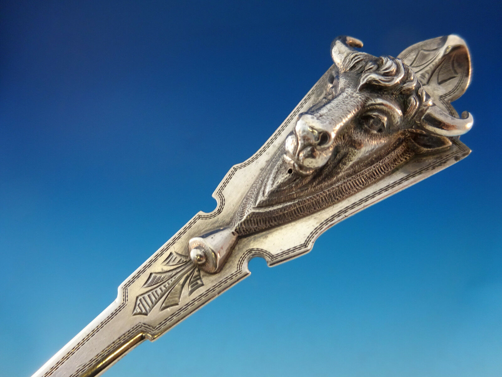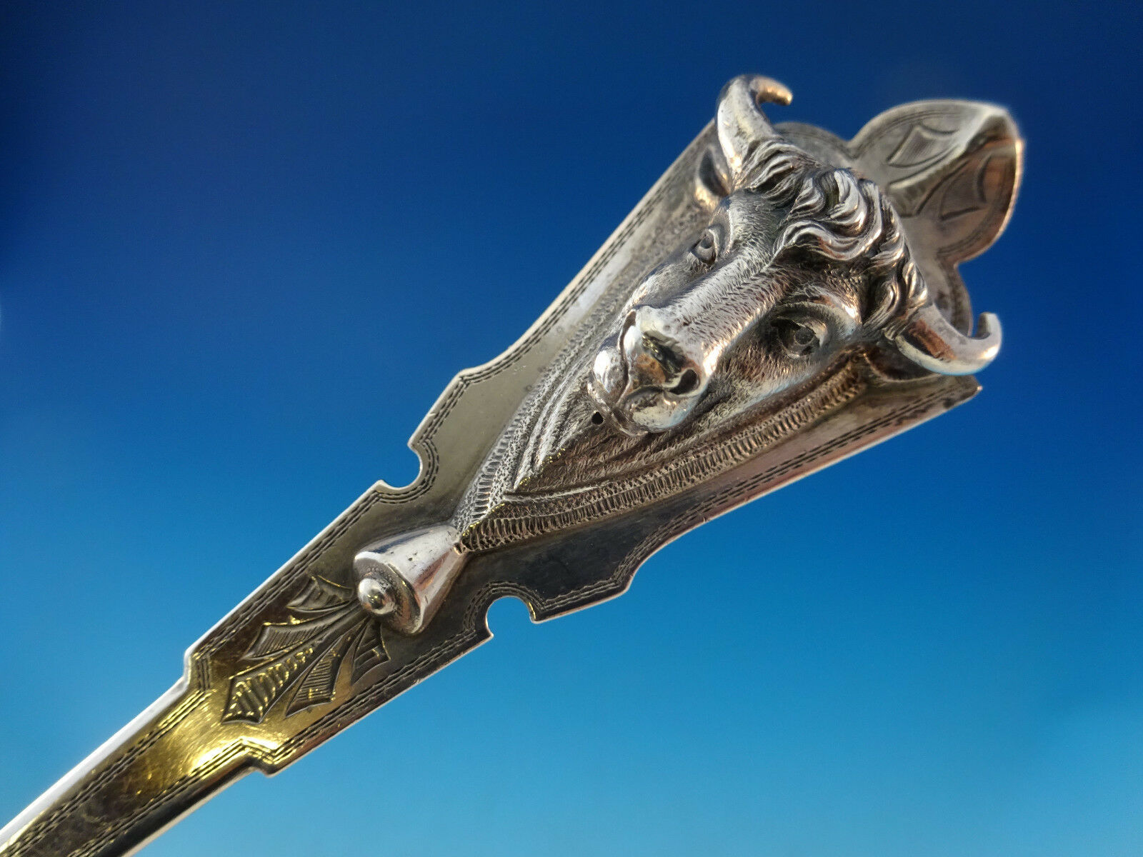 3-D Bull by George Sharp sterling silver Cracker Scoop Gold Washed, Bright-Cut, Scalloped, 9 7/8". It is monogrammed (mono on reverse) and is in excellent condition. Museum quality. Incredible crisp 3-D detailing!