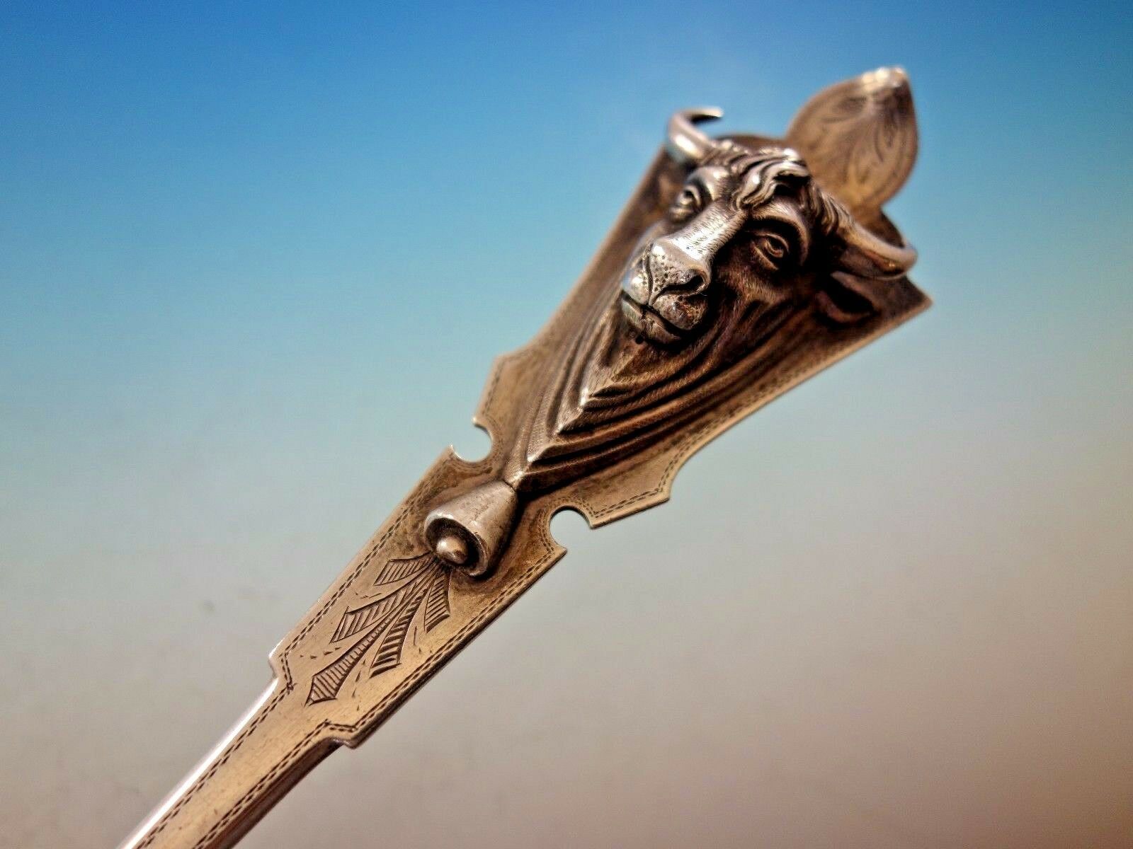 Sterling silver Soup Ladle with applied 3D bull, gold washed bowl in the pattern Bull by Sharp.