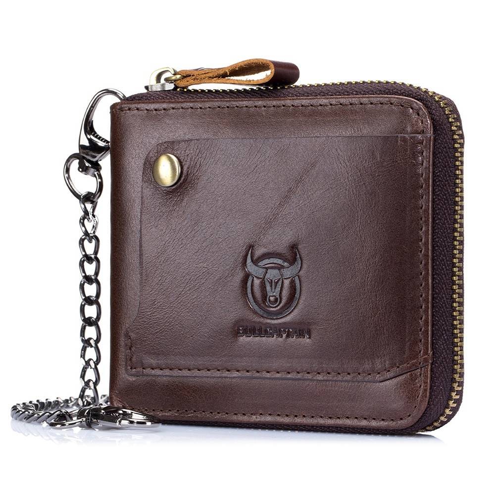 - BULLCAPTAIN Cowhide Genuine Leather Chain Men Wallet Coin Purse