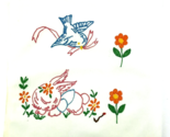 - Bunny Rabbit and Bird Embroidery Panel Vintage1950s Style Hand Painted Adorable