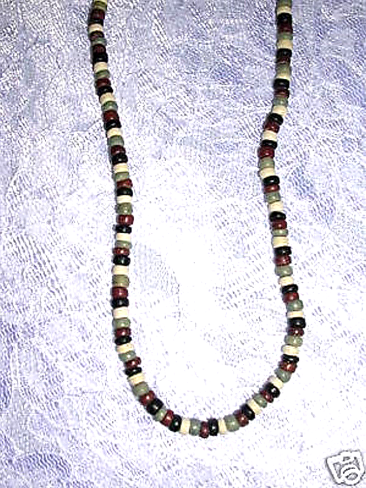 BURGUNDY GREEN BLACK NATURAL OFF WHITE WOOD COCO BEADS 18" STRAND NECKLACE