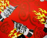 It is BURGUNDY, BROWN, YELLOW, BLACK WHITE with WILD SINISTER SKULL DUDE WITH MUSTACHE BEARD IN A TOP HAT WITH FLAMES DICE and TRIBAL DESIGN BACKGROUND BY hogwear (Trademark)