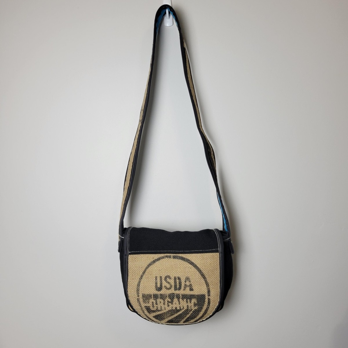 Burlap Sustainable USDA Organic Crossbody Messenger Bag Beige Black Blue Earth