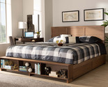 - Burma Ash Walnut Brown King Size 4-Drawer Platform Storage Bed w Shelves