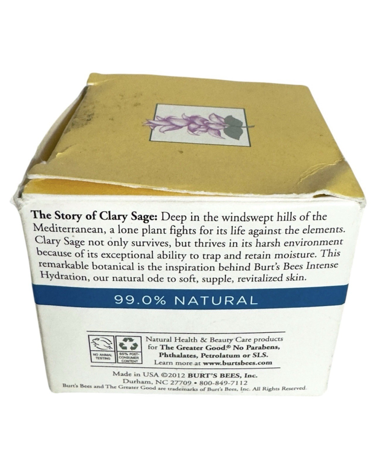 - Burt’s Bees Night Cream Intense Hydration Clary Sage 1.8 oz *OPEN* SEE PHOTOS!