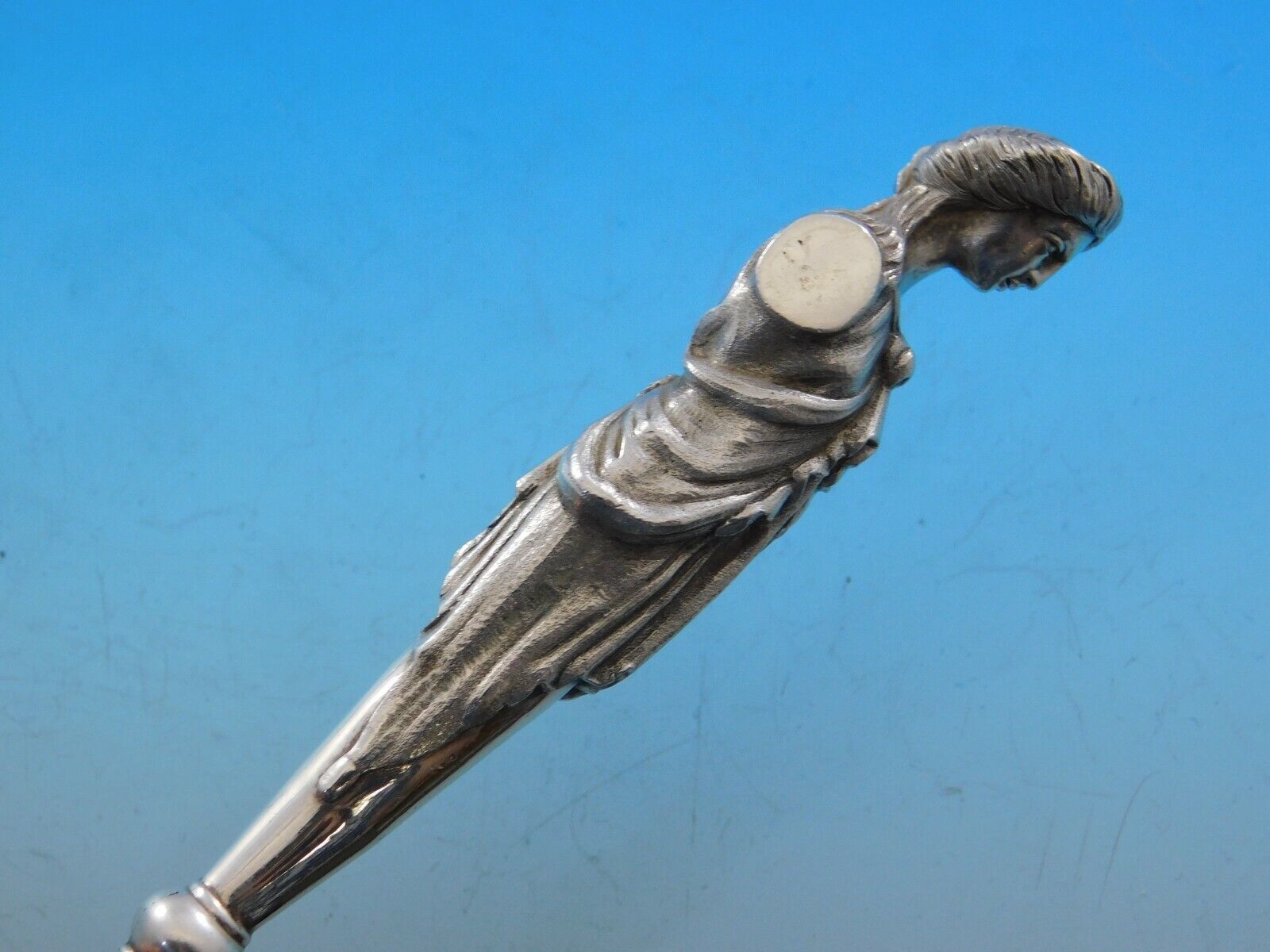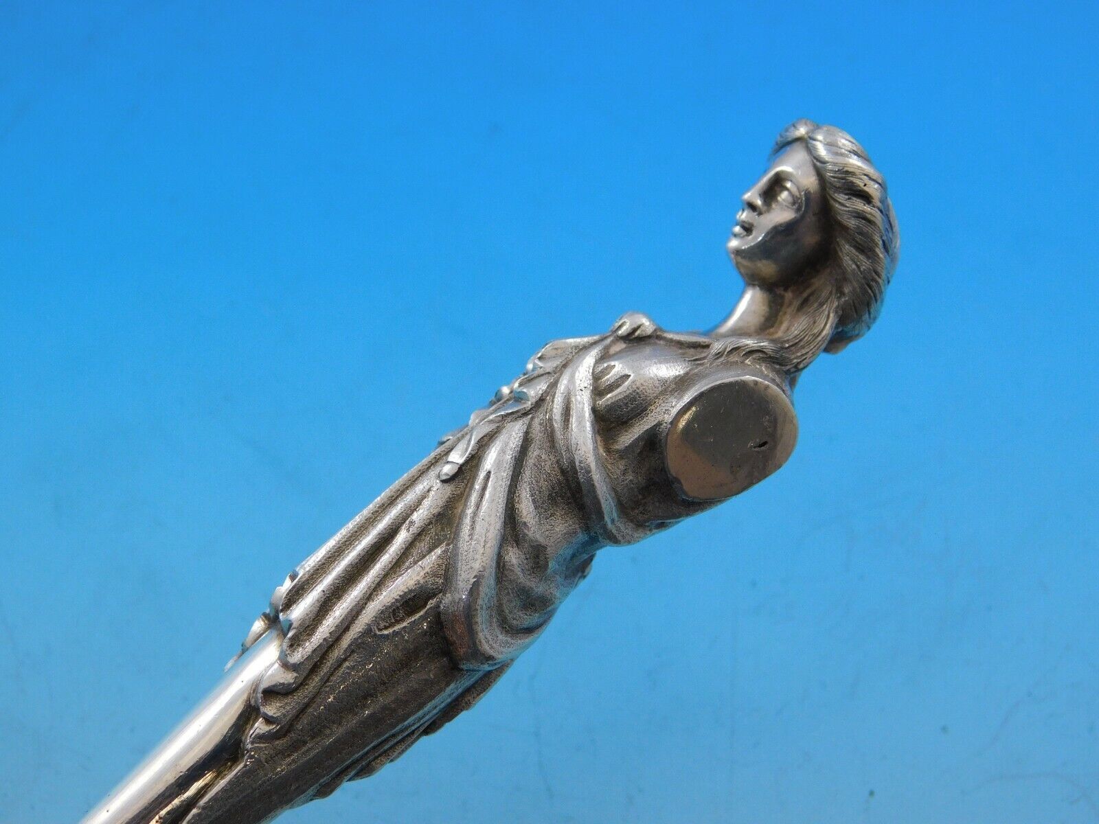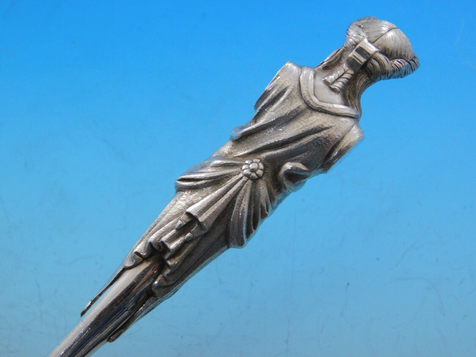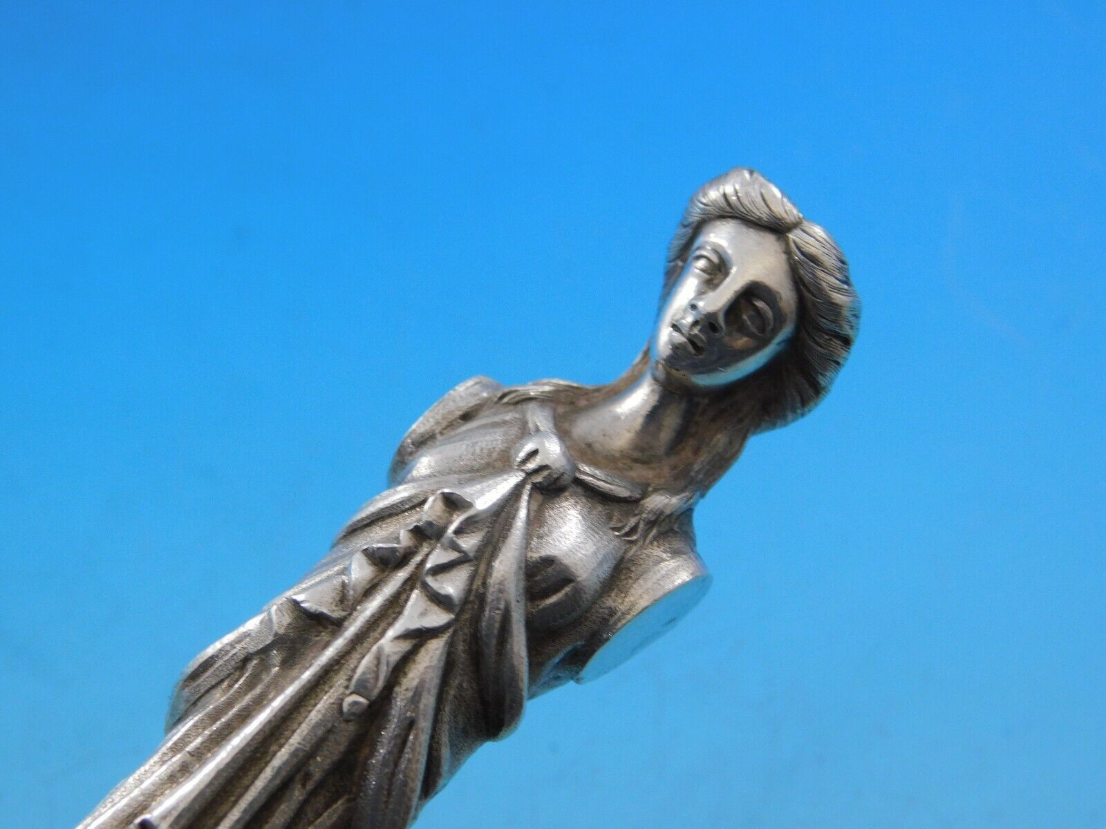 - Bust by Wendt Sterling Silver Pea Spoon GW 8 3/4" 3-D Figural Antique Sculptural
