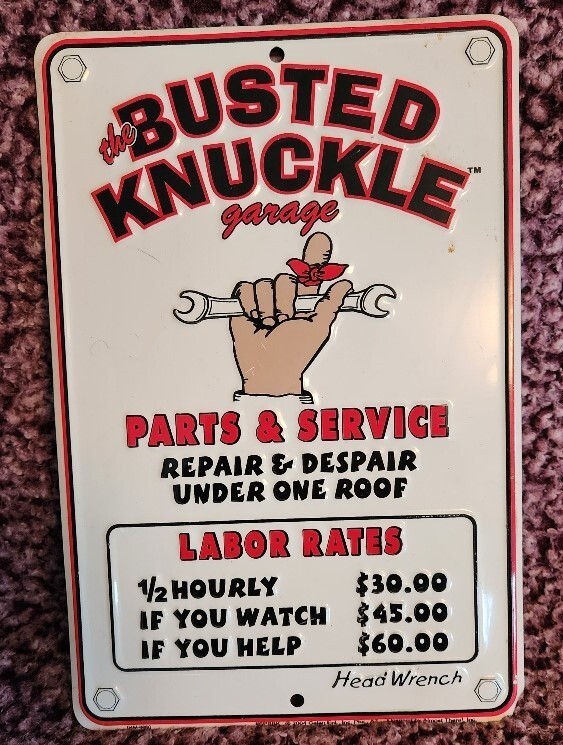 BUSTED KNUCKLE Rates - *US MADE* Embossed Sign - Man Cave Garage Bar Wall Decor