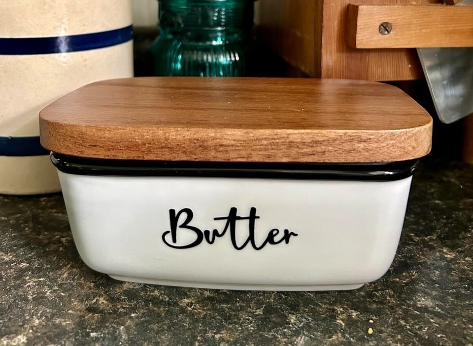 Long-lasting and Healthy Ceramic: The ceramic base is fired at high temperatures and the screen-printed lettering won't easily peel off during dishwasher use or daily use. Ceramic material has natural cooling properties and is better suited for storing butter than other materials.