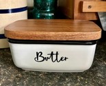 Elevate Your Kitchen Decor: The smooth ceramic combined with the dark acacia wood lid makes this butter dish a perfect complement to any modern or country-style kitchen, allowing you to enhance your country-style decor with this authentic butter dish. This retro-style butter dish will never go out of style.