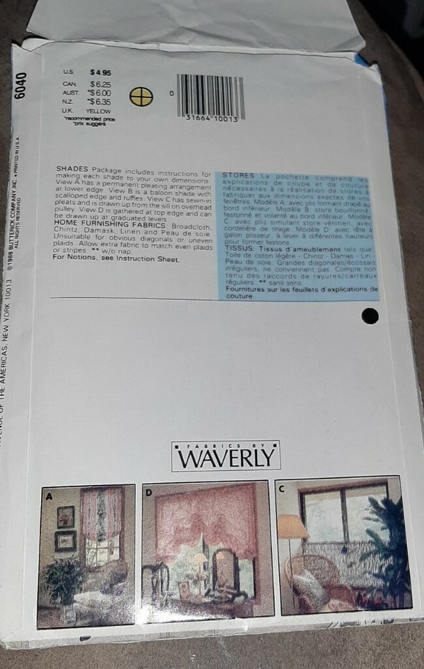 - Butterick Better Homes & Gardens 6040 Window Shades Pattern Guides UNCUT