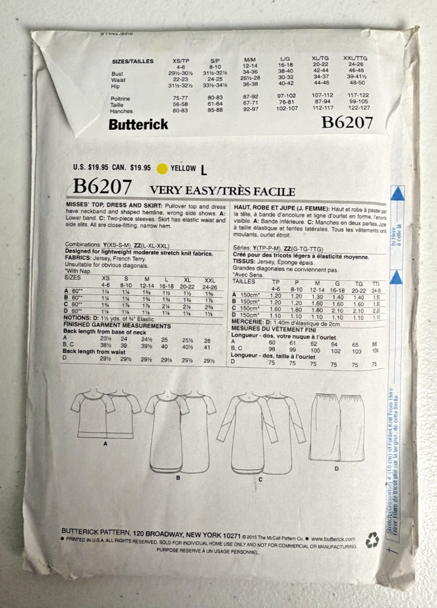 - Butterick Fast & Easy B6207 Size Y (Xsm-Sml-Med) Uncut 2015