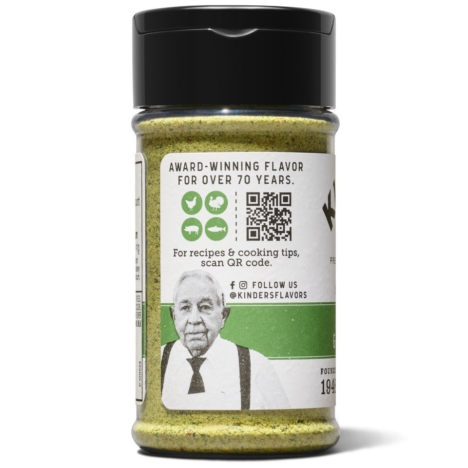 Butter. Garlic. Herbs. A hint of lemon peel. This family favorite butter blend with garlic, herbs and lemon is great with chicken, pork, fish, and vegetables. Whether you grill, roast, or saute, we can?t wait for you to try it. Kinder's: Handcrafted by People Obsessed with Flavor In 1946, World War II Navy veteran John Kinder started his own butcher shop in a small storefront in San Pablo, California. Over the next seven decades, John built a reputation for commitment to quality, family service and amazing flavors. At the age of 90, he was still showing up first and helping customers find quality ingredients to make clean, delicious meals for family and friends. At Kinder's, we carry on Grandpa John's legacy. We show up first. We treat you like family. We are obsessed with quality. And we hope you love our flavorful seasonings and sauces as much as we do. The Kinder's Difference Here at Kinder's, we take flavor and quality very seriously. Each one of our products is handcrafted with only the highest quality ingredients. We never use any artificial flavors, fillers, or additives. Just premium seasonings for meals the whole family will love.