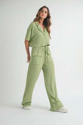 This set is the perfect combination of style and convenience. The button-up top adds a touch of sophistication, while the matching bottoms ensure a coordinated and effortless look. The soft, stretchable fabric allows ease of movement while maintaining a tailored silhouette.