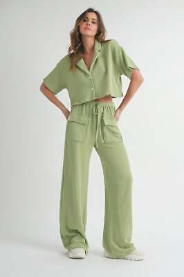 Design: The set includes a button-up top and matching bottoms, offering a cohesive and chic look that can be styled together or separately.