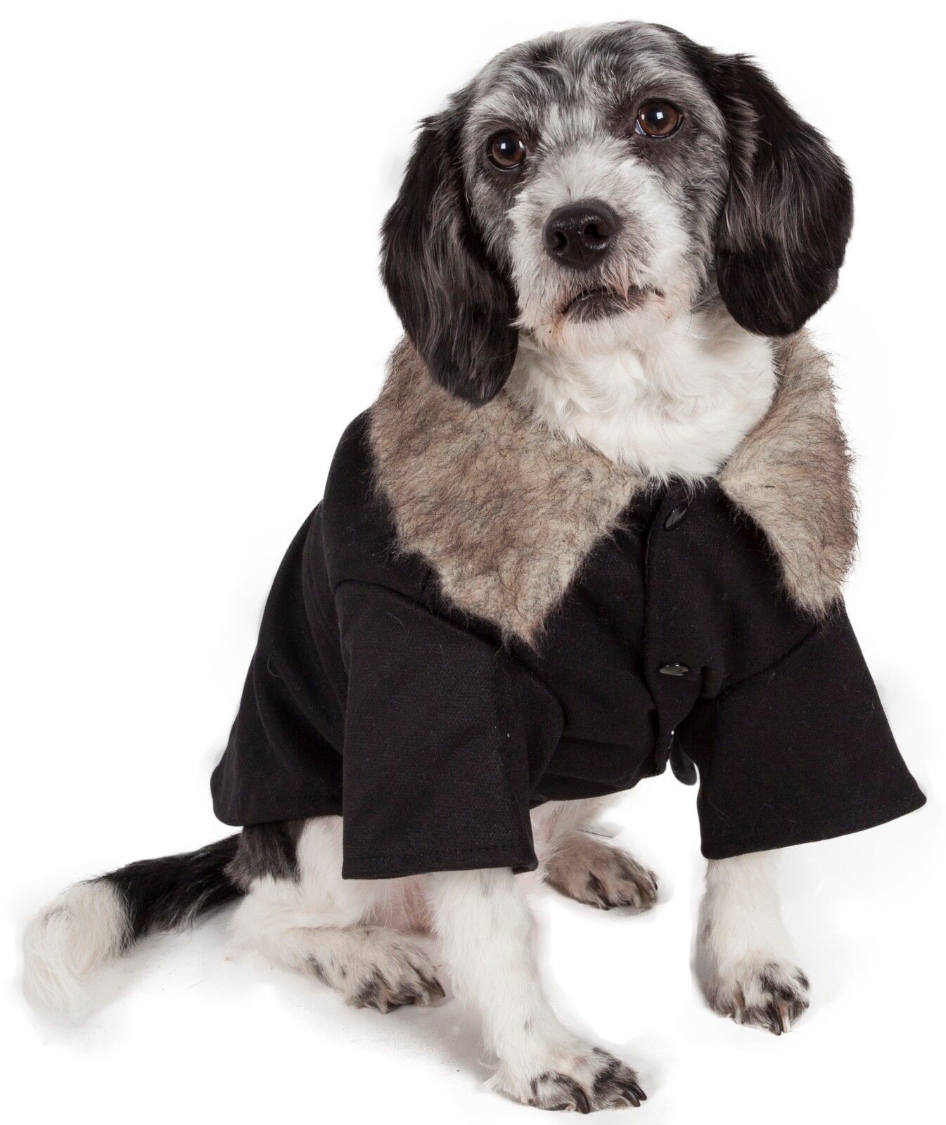 The Pet Life 'Coast Guard' Fashion Wool Dog Coat jacket is composed of 100% cotton wool and features a trendy dual buttoned accented strap along the backside and a cozy faux-fur collar. This pet coat also features snap button closure by the belly for easy on/off access and a leash slit holder behind the neck area. Available in multiple sizes.