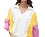 - Buxitt Colorblock Oversized V-Neck Dolman Sleeve Sweatshirt Patchwork Size L