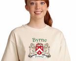 Byrne Irish Coat of Arms Tee Shirt in NaturalEvery Irish family has a story to tell, probably hundreds of stories. Your Irish coat of arms is a visual record of your family's oldest, most significant stories. Here, they're told in bright, permanent artwork on these fine-quality, all-cotton tee shirts. Authentic Irish Family Coat of Arms 100% Cotton Gildan Tee Shirt Over 25 years of Heraldry Research Printed with four color permanent process(no cracking or peeling-guaranteed) Choose from over 1000 available family coat of arms.