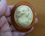 - C-1529 vintage Woman Lady off white shell cameo 1950's oval pendant necklace